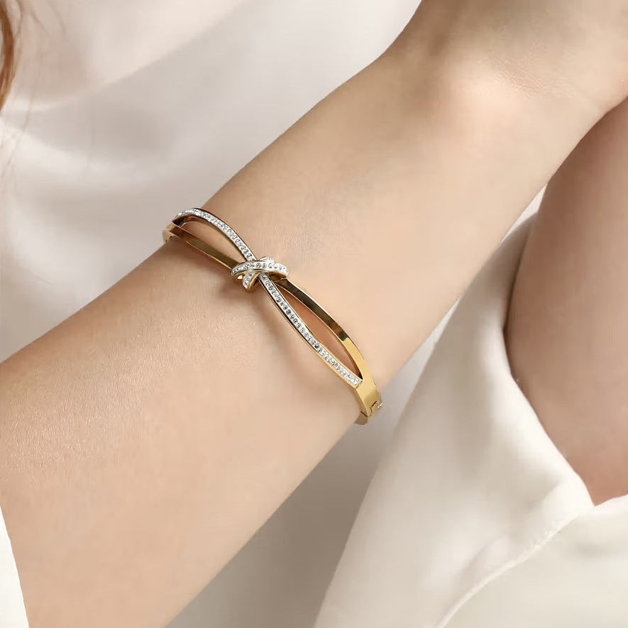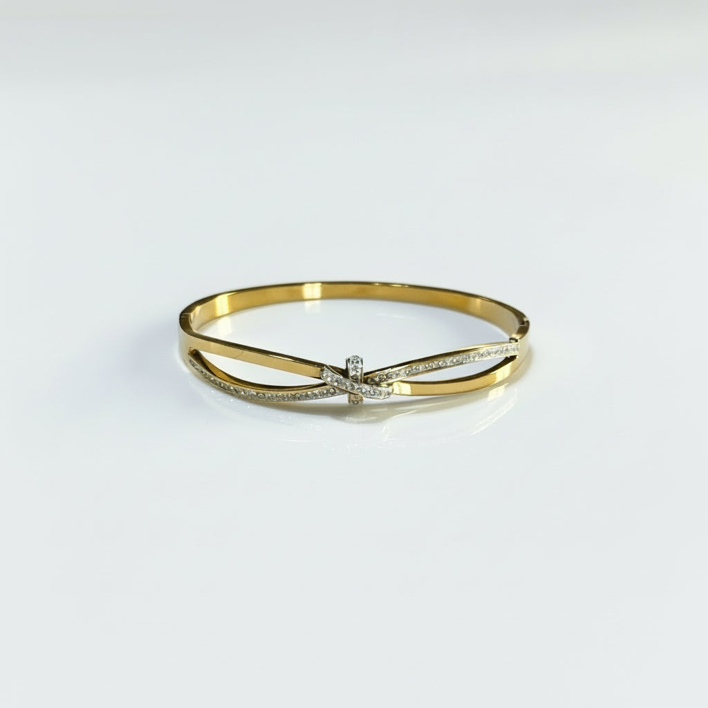 أضيفي لمسة من الأناقة العصرية مع هذا السوار من مضاوي، المصمم من ستانلس ستيل عالي الجودة والمطلي بالذهب عيار 18 قيراط. يجمع السوار بين البساطة والتفاصيل الراقية، مما يجعله مثاليًا لإطلالاتك اليومية أو للمناسبات الخاصة.